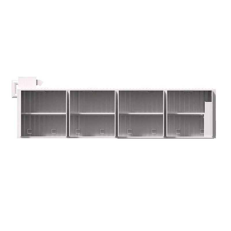 The ventilačný a výfukový systém sa skladá zo 4 ventilačných žalúzií a ventilačné potrubné rozvody. Vetracie žalúzie sú inštalované vo vnútri skrinka a vo vnútri žalúzií je nainštalovaná sieťka proti hmyzu a potkanom pre prívod vzduchu. |
