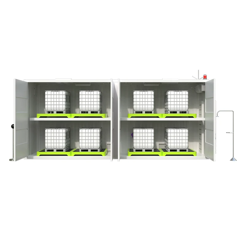 Pokiaľ ide o konštrukčný dizajn, hlavná časť skladu využíva robustný rám z oceľovej konštrukcie, ktorý odoláva silnému vetru, silnému dažďu a inému nepriaznivému počasiu. Vnútorné policové skrinky na dočasné uskladnenie odolné proti výbuchu majú flexibilné rozloženie políc a vysokú nosnosť. Dajú sa individuálne nastaviť podľa veľkosti, hmotnosti a kategórie uložených vecí, čím sa efektívne zlepšuje využitie priestoru. Či už ide o malé fľaštičky s chemickými činidlami alebo väčšie fľaše s priemyselným plynom, možno ich skladovať usporiadaným spôsobom.